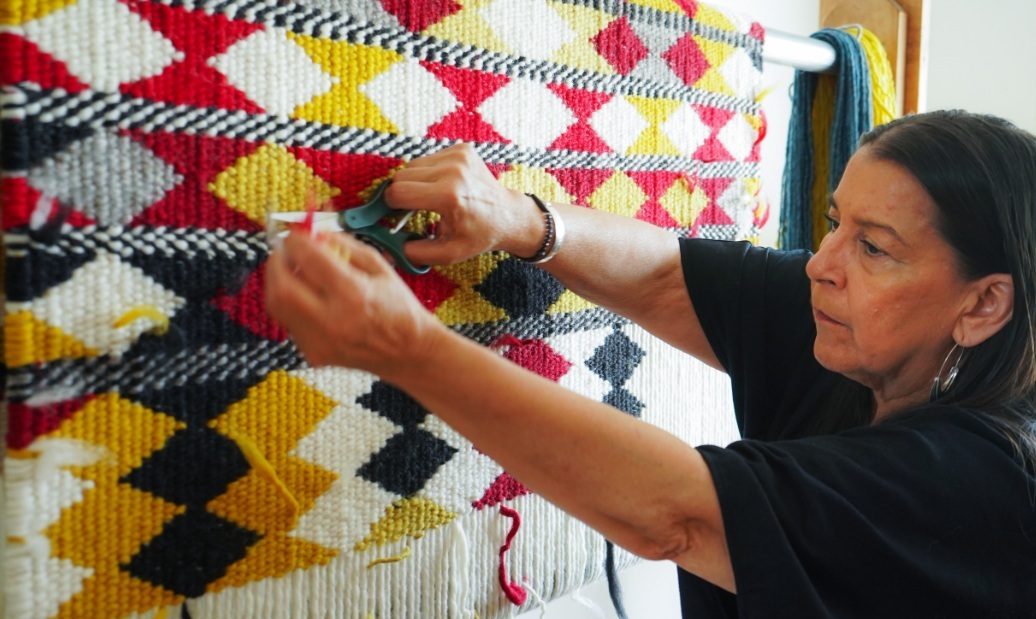 Join us for a Granville Island double bill special event! Renowned artist Debra Sparrow, born and raised on the Musqueam Indian Reserve and self-taught in Salish design and jewellery-making, creates contemporary work that combines textile and Salish design into geometric, hand-spun blankets and hangings. Her work can be seen in various museums and institutions. As an active educator, Debra will give CASV members a special tour of her studio and share her knowledge of Salish weaving. This will be followed by a private tour with artist Justin Somjen to explore his latest exhibition, Spines, at Wil Aballe Gallery.